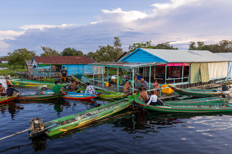 After breakfast, journey beyond the city to the floating world of Tonle Sap. A boat ride takes you through the canals of Kompong Phluk, where stilted houses rise dramatically above the water. Witness fishermen casting their nets, vendors selling produce from wooden boats, and children in uniforms returning from school, daily life gracefully unfolding on the lake. Glide by canoe into tranquil mangroves, where serene reflections and the occasional waterbird create a painter’s dream, before continuing out to the vast expanse of Tonle Sap to learn about its rich biosphere. Return to town for a flavorful Khmer lunch. Later, indulge in an hour of aromatherapy or foot reflexology at a top spa, followed by a refined Khmer dinner at the renowned Chanrey Tree restaurant. End the evening in wonder with the dazzling Phare Circus, where theater, dance, and acrobatics bring Cambodia’s stories to life.